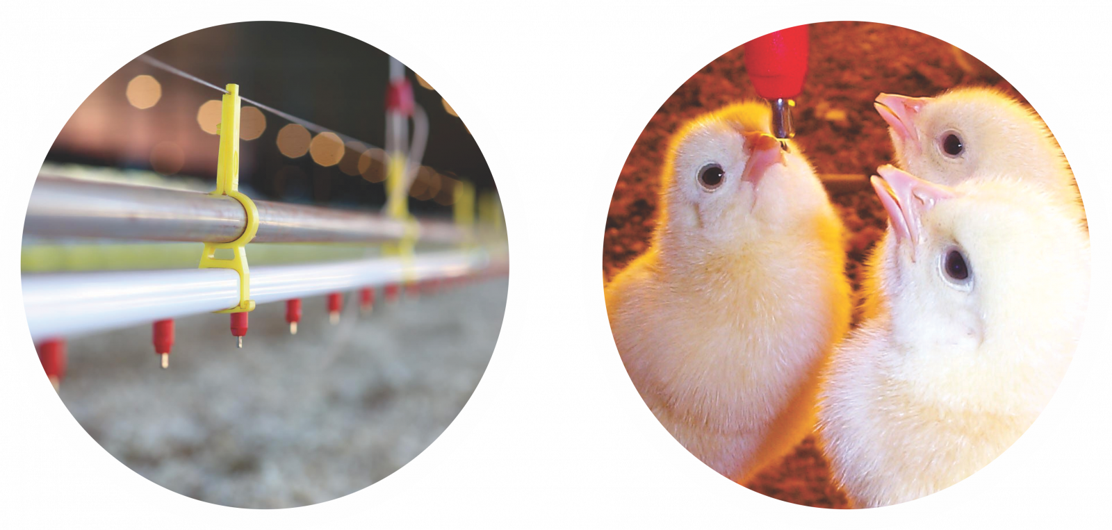 Avicultura Frango de Corte Bebedouros- Suporte plástico fabricado em polipropileno de alta densidade, com proteção anti-UV e com resistência de até 5 mil PPM de cloro;