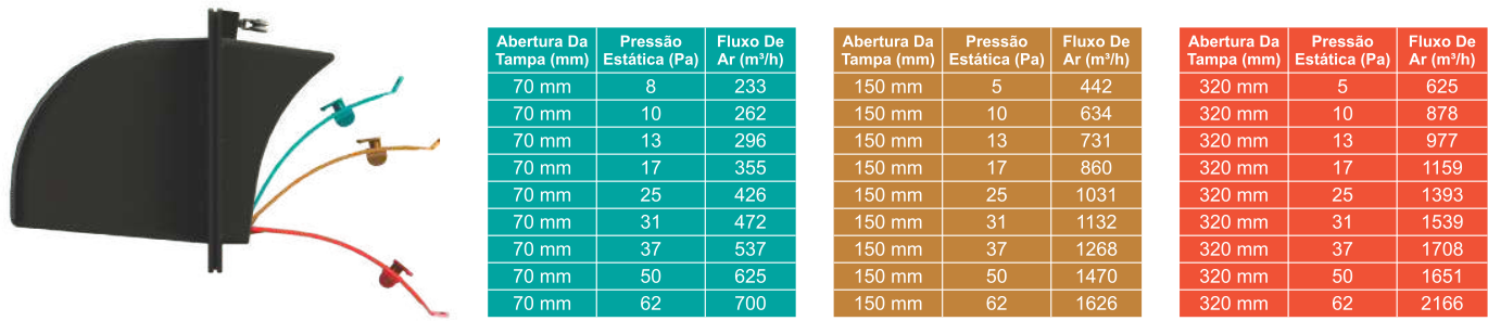 - A tampa curvada direciona corretamente o fluxo de ar, tornado a ventilação mínima mais eficiente;